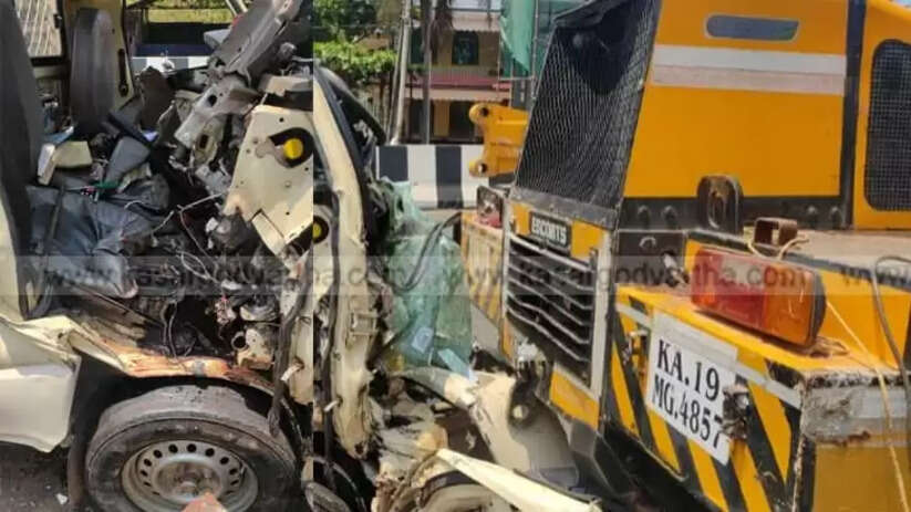 Pickup van collided with a parked crane on the Mogral National Highway, trapping the driver's leg. Firefighters rescued the severely injured driver after a 45-minute operation.