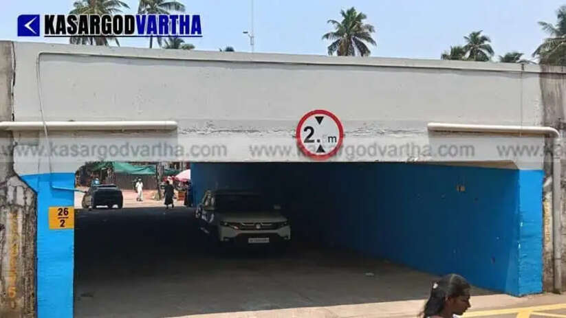 Article Summary: The underpass on National Highway 66 at Mogral Puthur in Kasaragod has become a hazard, with uneven heights of 2.5m and 2m on either side causing roof damage to over 100 vehicles; locals allege this resulted from unscientific road raising to prevent waterlogging, forcing ambulances on a 2 km detour, while authorities merely altered the warning board instead of providing a real solution.