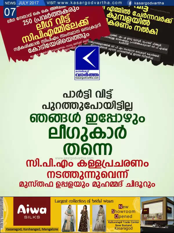 Keywords: Kasaragod, Kerala, Uppala, news, Muslim-league, CPM, Mohammed Chidoor and Musthafa Uppala against CPM