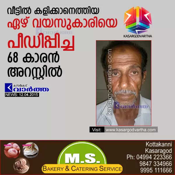 Keywords: Kasaragod, Kerala, arrest, Molestation, House, Child, Hospital, Molestation: 68 year old arrested.