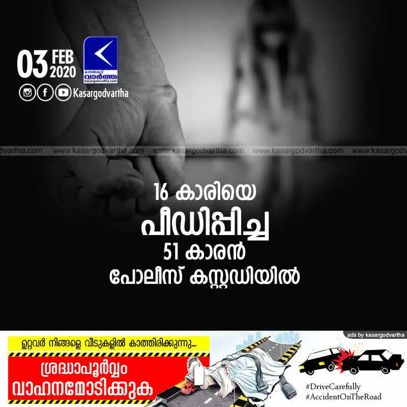 16 കാരിയെ പീഡിപ്പിച്ച 51 കാരന്‍ പോലീസ് കസ്റ്റഡിയില്‍