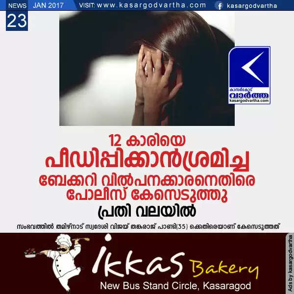 12 കാരിയെ പീഡിപ്പിക്കാന്ശ്രമിച്ച ബേക്കറി വില്പനക്കാരനെതിരെ പോലീസ് കേസെടുത്തു; പ്രതി വലയില്