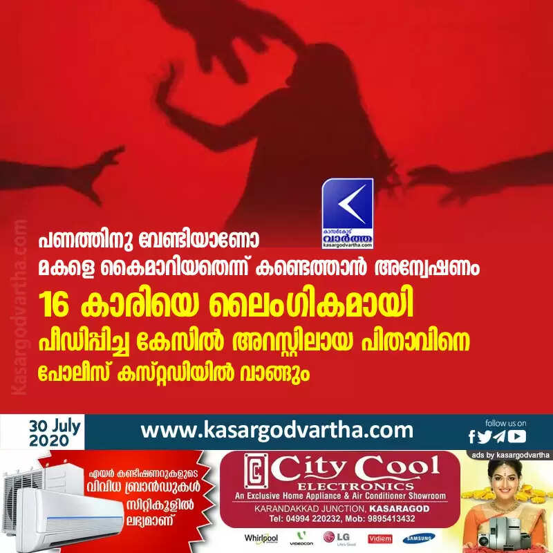 പണത്തിനു വേണ്ടിയാണോ മകളെ കൈമാറിയതെന്ന് കണ്ടെത്താന് അന്വേഷണം; 16 കാരിയെ ലൈംഗികമായി പീഡിപ്പിച്ച കേസില് അറസ്റ്റിലായ പിതാവിനെ പോലീസ് കസ്റ്റഡിയില് വാങ്ങും