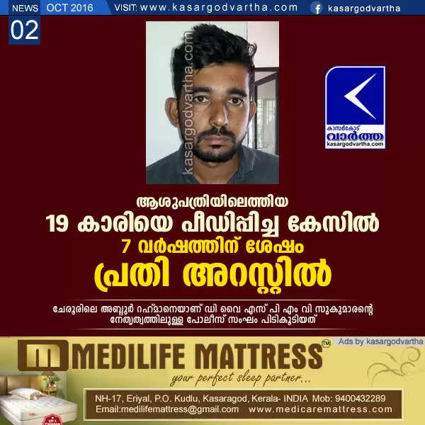 ആശുപത്രിയിലെത്തിയ 19 കാരിയെ പീഡിപ്പിച്ച കേസില് 7 വര്ഷത്തിന് ശേഷം പ്രതി അറസ്റ്റില്
