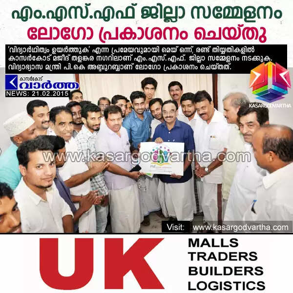 Keywords : MSF District conference, Logo released, Kasargod, Minister Abul Rabb, Kerala.