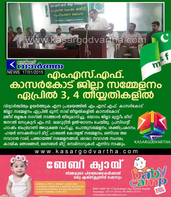 എം.എസ്.എഫ്. കാസര്കോട് ജില്ലാ സമ്മേളനം ഏപ്രില് 3, 4 തീയ്യതികളില്