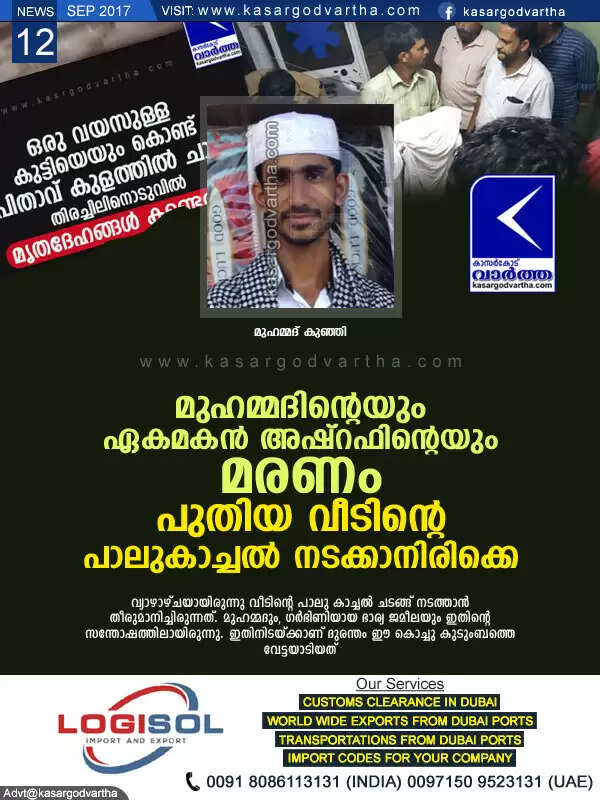 കാറഡുക്ക: (www.kasargodvartha.com 12.09.2017) നാരംപാടി പുണ്ടൂരിലെ മുഹമ്മദ് കുഞ്ഞി എന്ന മമ്മിഞ്ഞി (33)യുടെയും ഒരു വയസുള്ള മകന് അഷ്റഫിന്റെയും മരണം നാടിനെ ദുഃഖത്തിലാഴ്ത്തി. ചൊവ്വാഴ്ച വൈകുന്നേരത്തോടെയാണ് ഉപ്പയും മകനും കുളത്തില് വീണ് മരിച്ചതായുള്ള ദുരന്ത വാര്ത്ത കാതുകളിലെത്തിയത്. കേട്ടവര് കേട്ടവര് പുണ്ടൂരിലെ കുളക്കരയിലെത്തി.