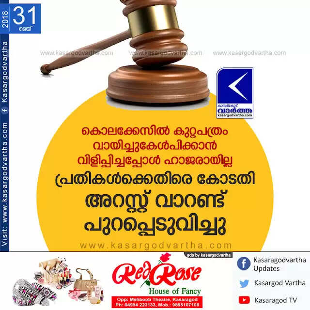 Keywords: Kasaragod, Kerala, news, arrest, Police, arrest warrant, court, Murder-case, Murder case accused not presented before court; Arrest warrant issued