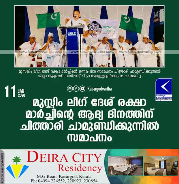Keywords: Kerala, kasaragod, news, Chithari, Muslim-league, March, Muslim League Desh Raksha march first day end