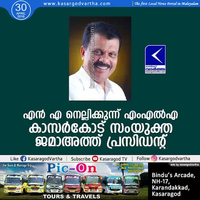 എന്‍ എ നെല്ലിക്കുന്ന് എംഎല്‍എ കാസര്‍കോട് സംയുക്ത ജമാഅത്ത് പ്രസിഡന്റ്