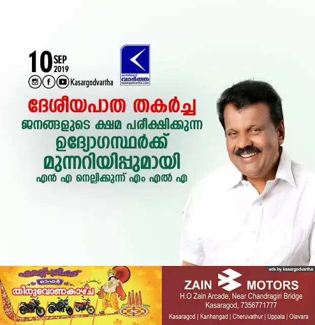 Keywords: Kasaragod, Kerala, news, MLA, N.A.Nellikunnu, National highway, NA Nellikunnu MLA on Bad National highway