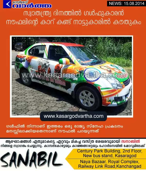 Keywords : Periya, Kasaragod, Car, Kerala, Naufal, Independence Day, Celebrations, Gulf, Kuniya.