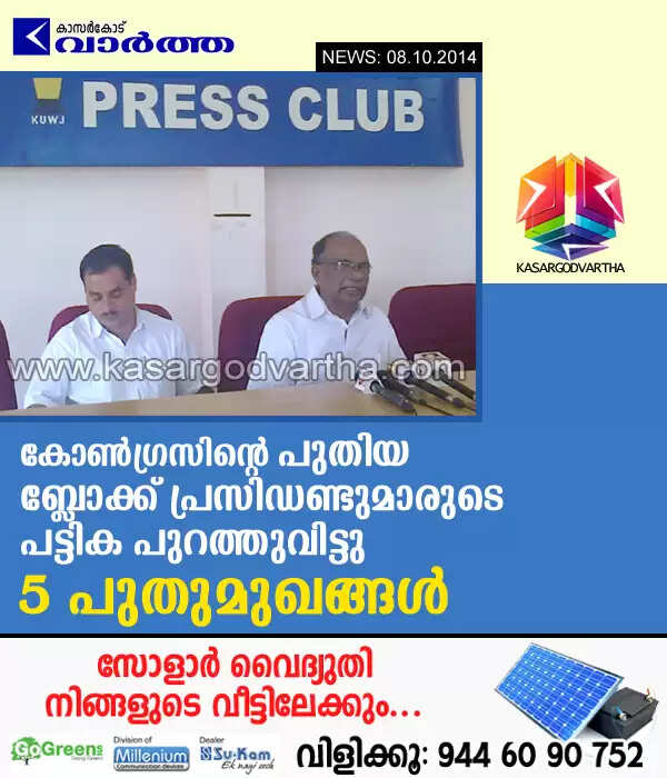Keywords : Kasaragod, Congress, President, Press meet, Block Committee, New block presidents for Congress.