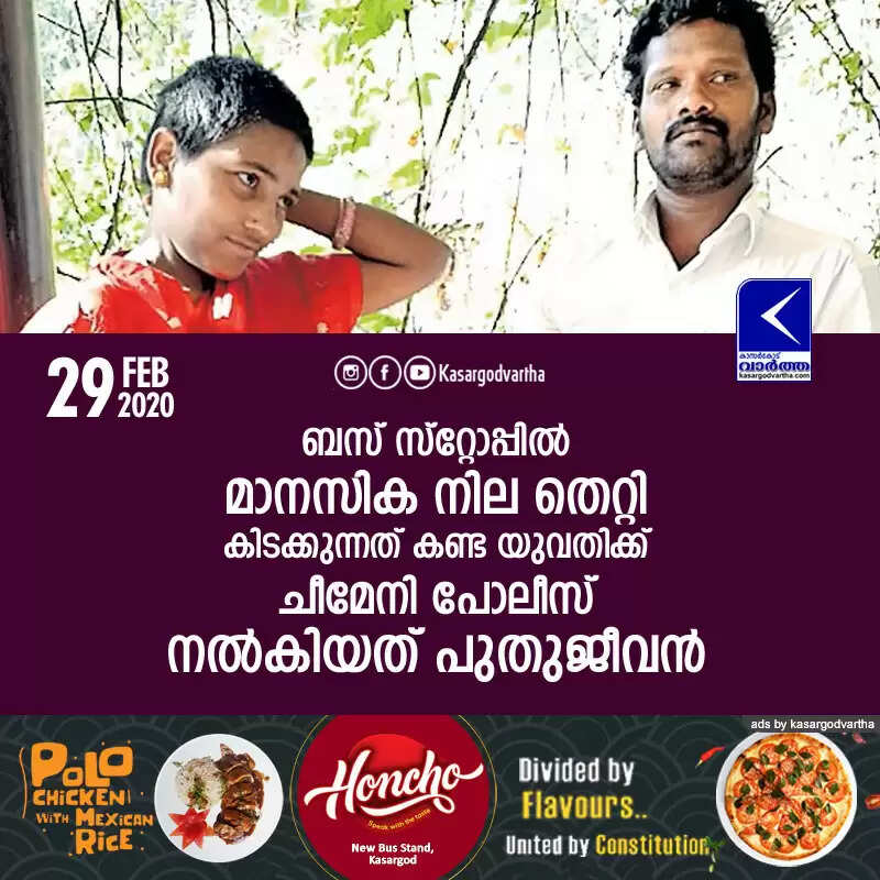 ബസ് സ്റ്റോപ്പില് മാനസിക നില തെറ്റി കിടക്കുന്നത് കണ്ട യുവതിക്ക് ചീമേനി പോലീസ് നല്കിയത് പുതുജീവന്