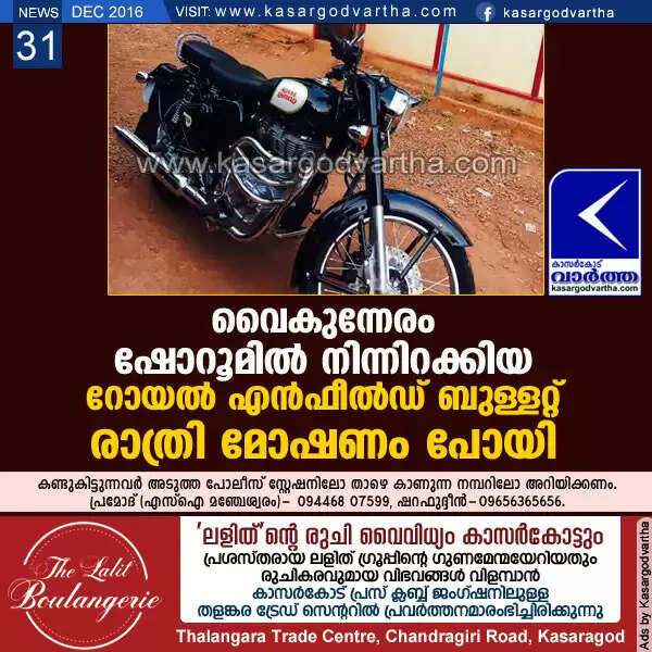 വൈകുന്നേരം ഷോറൂമില്‍ നിന്നിറക്കിയ റോയല്‍ എന്‍ഫീല്‍ഡ് ബുള്ളറ്റ് രാത്രി മോഷണം പോയി