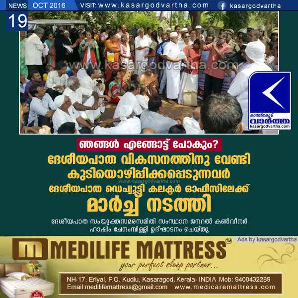 ഞങ്ങള് എങ്ങോട്ട് പോകും? ദേശീയപാത വികസനത്തിനു വേണ്ടി കുടിയൊഴിപ്പിക്കപ്പെടുന്നവര് ദേശീയപാത ഡെപ്യൂട്ടി കലക്ടര് ഓഫീസിലേക്ക് മാര്ച്ച് നടത്തി