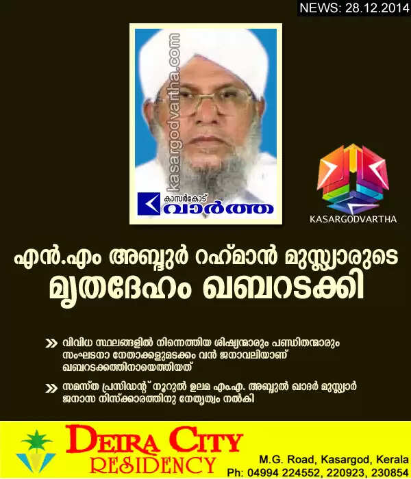 Keywords : Melparamba, Death, Kasaragod, Kerala, NM Abdul Rahman Musliyar.