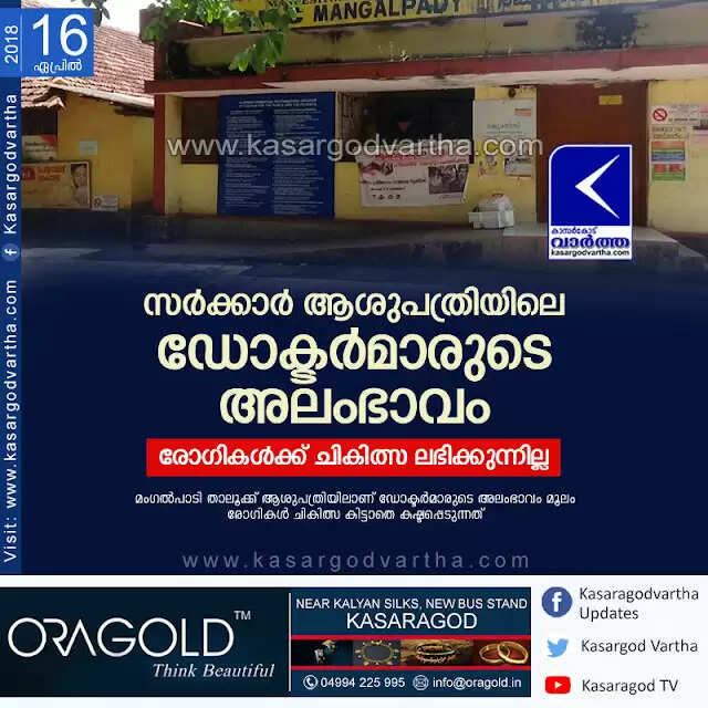 Keywords: Kerala, news, Kasaragod, Uppala, Govt.Hospital, Doctors, Patients, No Doctors for Mangalpady Taluk Hospital