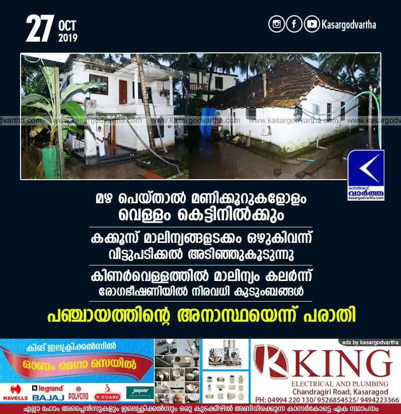മഴ പെയ്താല് മണിക്കൂറുകളോളം വെള്ളം കെട്ടിനില്ക്കും, കക്കൂസ് മാലിന്യങ്ങളടക്കം ഒഴുകിവന്ന് വീട്ടുപടിക്കല് അടിഞ്ഞുകൂടുന്നു, കിണര്വെള്ളത്തില് മാലിന്യം കലര്ന്ന് രോഗഭീഷണിയില് നിരവധി കുടുംബങ്ങള്, പഞ്ചായത്തിന്റെ അനാസ്ഥയെന്ന് പരാതി