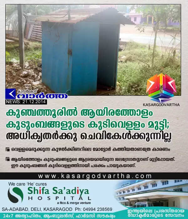 കുഞ്ചത്തൂരില്‍ ആയിരത്തോളം കുടുംബങ്ങളുടെ കുടിവെള്ളം മുട്ടി;അധികൃതര്‍ക്കു ചെവികേള്‍ക്കുന്നില്ല