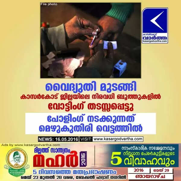 Keywords: Kasaragod, Election 2016, Manjeshwaram, Kumbala, Candidates, No Electricity, Polling continues, Candle light.