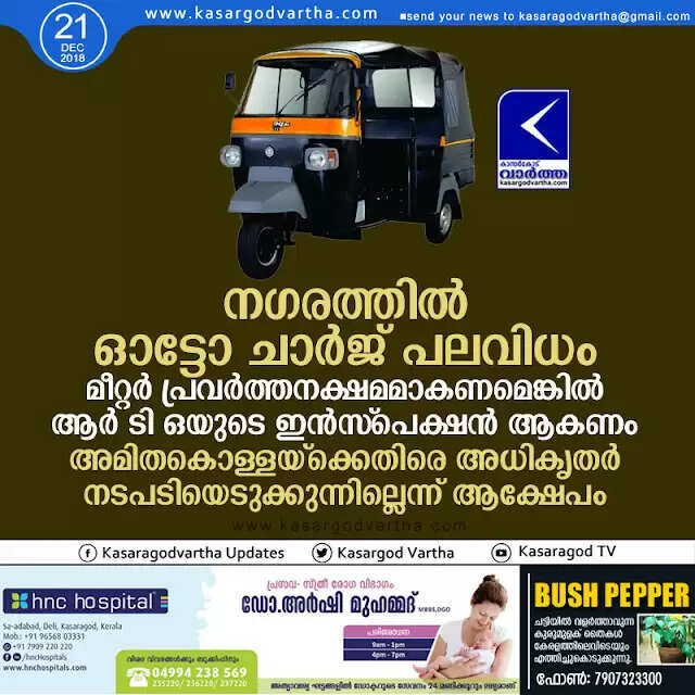 Keywords: Kasaragod, News, Autorikshaw, Meeter, Auto Charge, No meter facilities in Auto Services in Kasargod