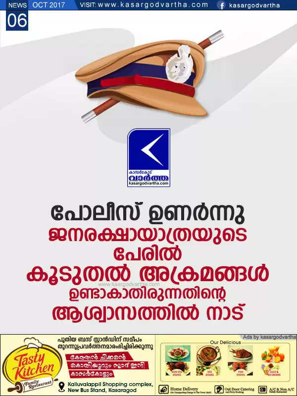 പോലീസ് ഉണര്ന്നു; ജനരക്ഷായാത്രയുടെ പേരില് കൂടുതല് അക്രമങ്ങള് ഉണ്ടാകാതിരുന്നതിന്റെ ആശ്വാസത്തില് നാട്