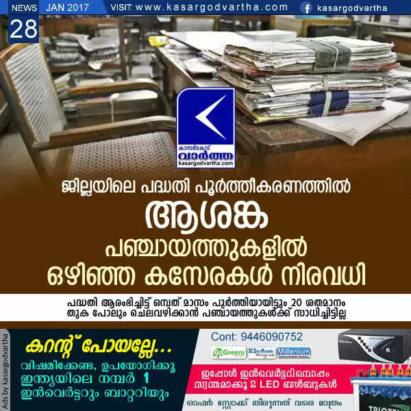Keywords: Kerala, kasaragod, Panchayath, Vacancy, Development project, Meeting, Inauguration, Clerk, Engineer, New Projects, Cash,