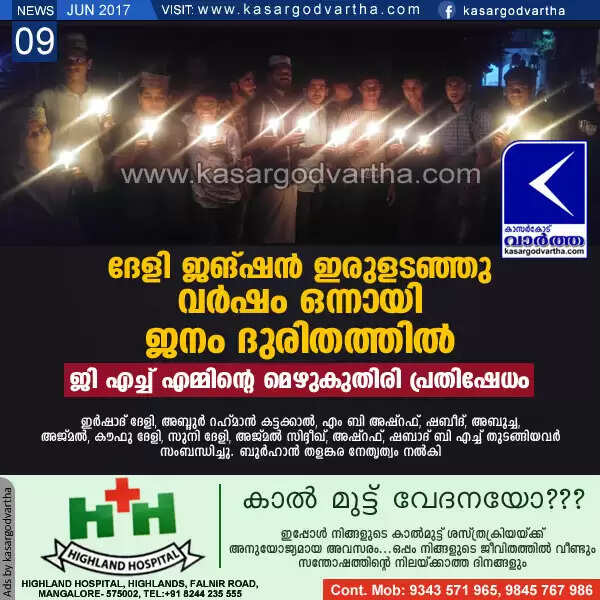 ദേളി ജങ്ഷന് ഇരുളടഞ്ഞു വര്ഷം ഒന്നായി; ജനം ദുരിതത്തില്, ജി എച്ച് എമ്മിന്റെ മെഴുകുതിരി പ്രതിഷേധം