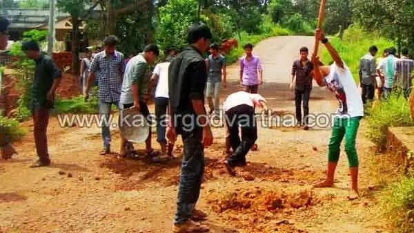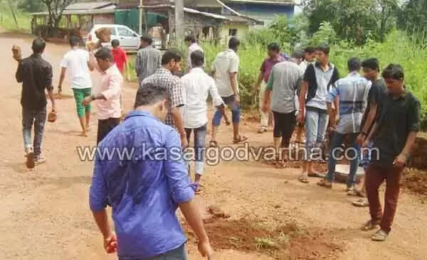 റോഡിലെ അപകടക്കുഴികള്‍ നികത്തി മുന്നാട് പീപ്പിള്‍സ് കോളജ് എന്‍.എസ്.എസ് വളണ്ടിയര്‍മാര്‍