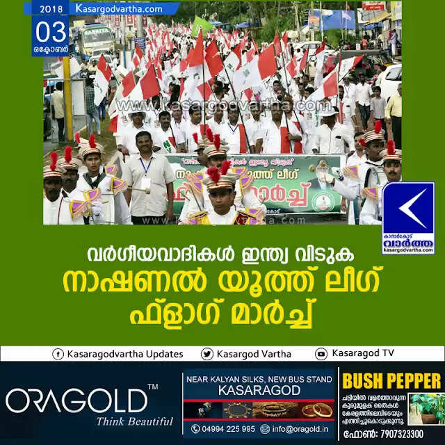 Keywords: NYL, Kasaragod, News, Rally, National Youth league, Flag March, NYL Flag march conducted