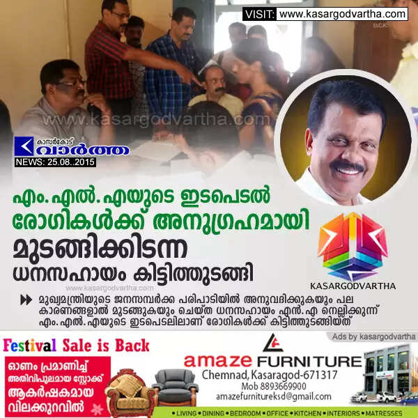 Keywords : Kerala, N.A. Nellikunnu, MLA, Oommen Chandy, Patient's, Kasaragod, Mass contact programme, Obstacles on financial aid lifted.