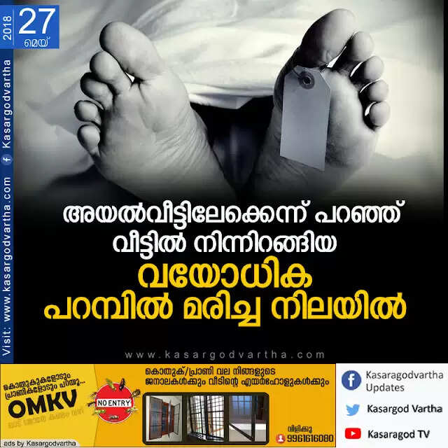 അയല്വീട്ടിലേക്കെന്ന് പറഞ്ഞ് വീട്ടില് നിന്നിറങ്ങിയ വയോധിക പറമ്പില് മരിച്ച നിലയില്