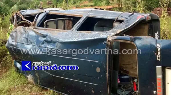 കുമ്പളയില് നിന്നും ബാഡൂരിലേക്ക് പോവുകയായിരുന്ന കെഎല് 14 എം 1353 നമ്പര് വാനാണ് നിയന്ത്രണം വിട്ട് റോഡരികിലേക്ക് മറിഞ്ഞത്. തലകീഴായി മറിഞ്ഞ വാന് 50 മീറ്ററോളം ദൂരേക്ക് തെറിച്ചുപോയി.