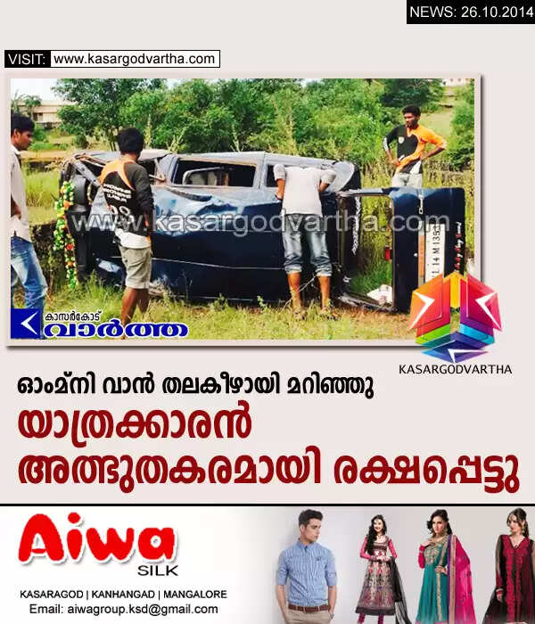 Keywords : Kumbala, Accident, Omni Van, Injured, Hospital, Kasaragod, Kerala, Omni van overturned; miraculous escape for driver.