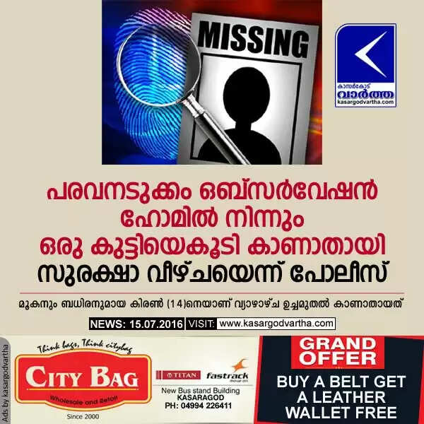 Keywords : Paravanadukkam, Missing, Police, Complaint, Investigation, Kasaragod, One more child goes missing in observation home