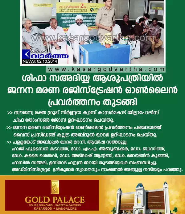 ശിഫാ സഅദിയ്യ ആശുപത്രിയില്‍ ജനന മരണ രജിസ്‌ട്രേഷന്‍ ഓണ്‍ലൈന്‍ പ്രവര്‍ത്തനം തുടങ്ങി