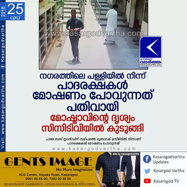 Keywords: Kasaragod, Kerala, News, Masjid, Robbery, Footwear robbed from Masjid; accused trapped in CCTV.