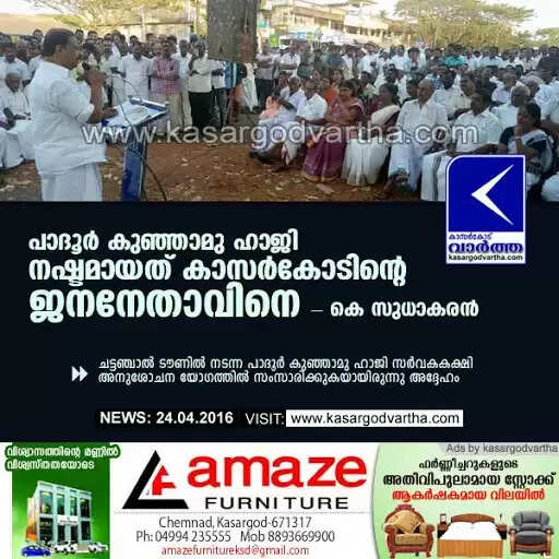 പാദൂര്‍ കുഞ്ഞാമു ഹാജി; നഷ്ടമായത് കാസര്‍കോടിന്റെ ജനനേതാവിനെ- കെ സുധാകരന്‍