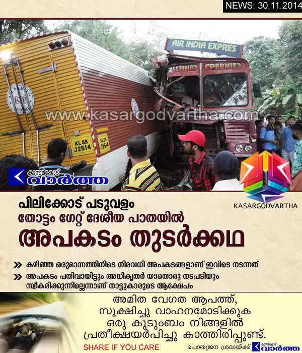 Keywords : Cheruvathur, Pilicode, Accident, Kasaragod, Kerala, Injured, Death, Paduvalam Thottam Gate become Accident zone.