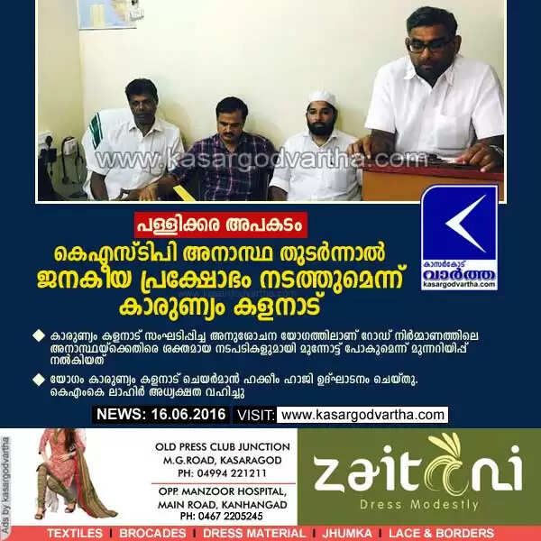 പള്ളിക്കര അപകടം; കെഎസ്ടിപി അനാസ്ഥ തുടര്‍ന്നാല്‍ ജനകീയ പ്രക്ഷോഭം നടത്തുമെന്ന് കാരുണ്യം കളനാട്