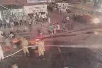 ഈസമയം അതുവഴിവന്ന മൂന്ന് ബൈക്കുകള് നിയന്ത്രണംവിട്ട് മറിഞ്ഞു. പിന്നീട് ഇവിടെ രണ്ടുകാറുകളും നിയന്ത്രണം വിട്ടതോടെ നാട്ടുകാര് റോഡില് മണ്ണിടുകയായിരുന്നു. ഇതിനെതുടര്ന്നിട്ടും റോഡിലെ ഓയില് നീങ്ങാത്തതിനാല് ഫയര്ഫോഴ്സിനെ വിളിക്കുകയായിരുന്നു. ഫയര്ഫോഴ്സെത്തി റോഡില് വെള്ളം ചീറ്റിയാണ് ഓയില് ഒഴുക്കിക്കളഞ്ഞത്.