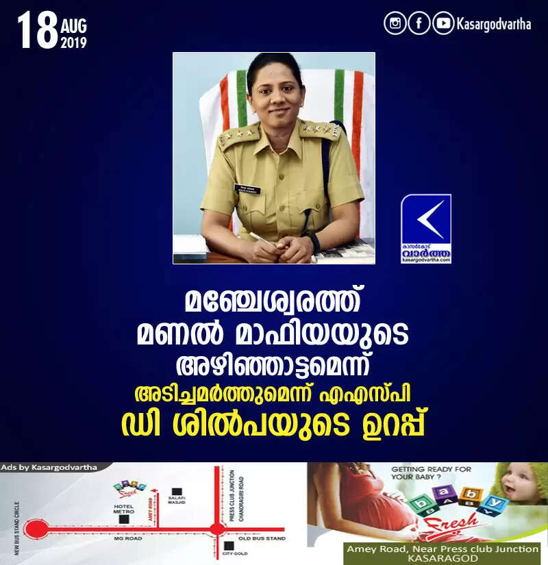 മഞ്ചേശ്വരത്ത് മണല് മാഫിയയുടെ അഴിഞ്ഞാട്ടമെന്ന്, അടിച്ചമര്ത്തുമെന്ന് എഎസ്പി ഡി ശില്പയുടെ ഉറപ്പ്