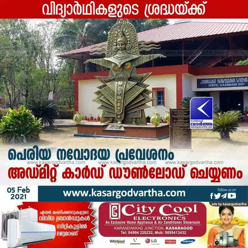 Keywords: Kasaragod, News, Periya, Navodaya, Student, Students, Examination, Entrance Exam, Periya Navodaya Admission: Admit Card must be downloaded