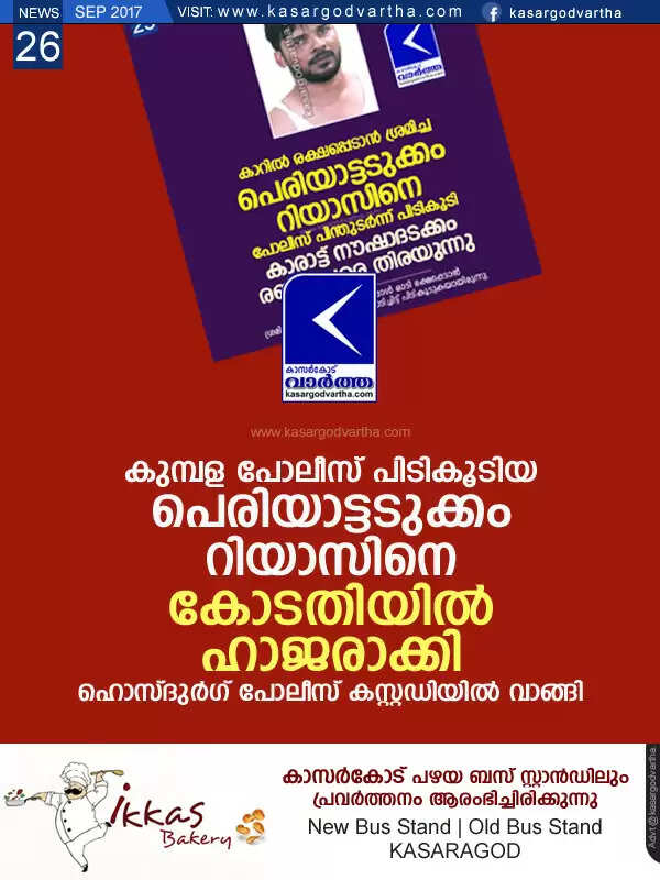 Keywords: Kasaragod, Kerala, news, Periyattedukam Riyas, court, Periyattadukkam Riyas produced before court.