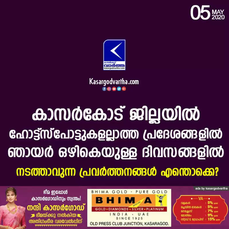 Keywords: Kasaragod, Kerala, COVID-19, News, Permission, District, Permission for these things in Kasaragod district