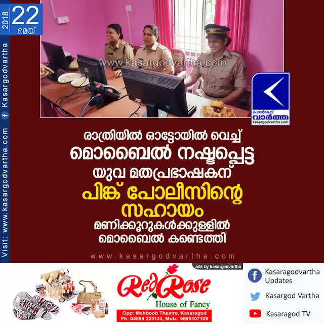 Keywords: Kasaragod, Kerala, News, Pink police, Mobile, Railway station, Pink police helps Youth; Missed mobile phone recovered.