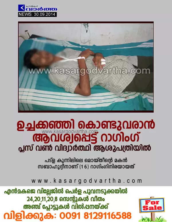Keywords: Student, Kerala, Patla, Kasaragod, Hospital, Plus one student hospitalized after raging.