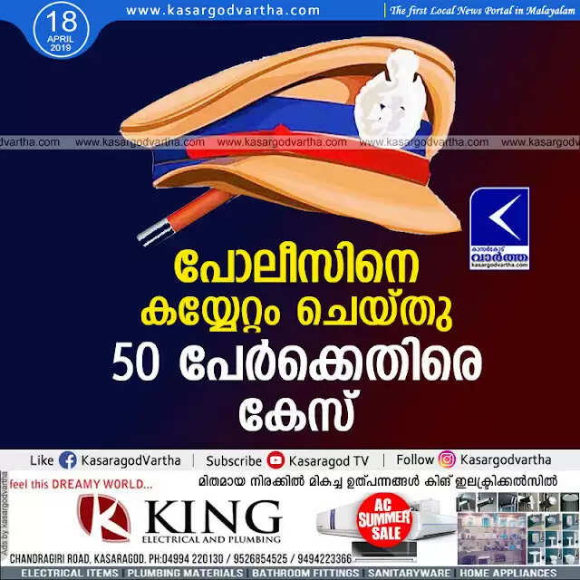 ഉപ്പള: (www.kasargodvartha.com 18.04.2019) പോലീസിനെ കയ്യേറ്റം ചെയ്യുകയും ഔദ്യോഗിക കൃത്യനിര്‍വഹണം തടസപ്പെടുത്തുകയും ചെയ്ത സംഭവത്തില്‍ 50 പേര്‍ക്കെതിരെ മഞ്ചേശ്വരം പോലീസ് സ്വമേധയാ കേസെടുത്തു.