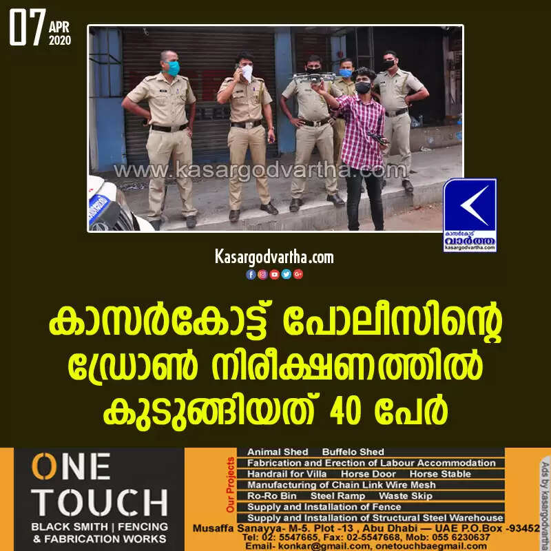 കാസര്‍കോട്ട് പോലീസിന്റെ ഡ്രോണ്‍ നിരീക്ഷണത്തില്‍ കുടുങ്ങിയത് 40 പേര്‍